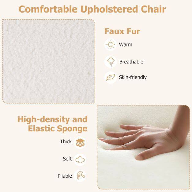 ● More Exquisite Details: Designed with a 25" x 20.5" (L x D) wide comfortable seat and a 3.5" thickened cushion for added support, this vanity chair makes you sit for a long time without getting tired. And the soft faux fabric adds a touch of luxury, making this chair stand out with both comfort and style.