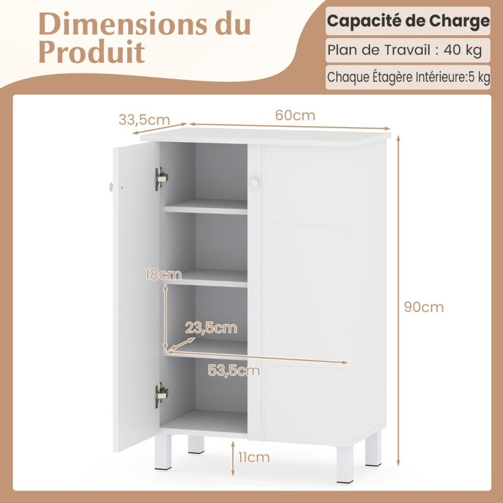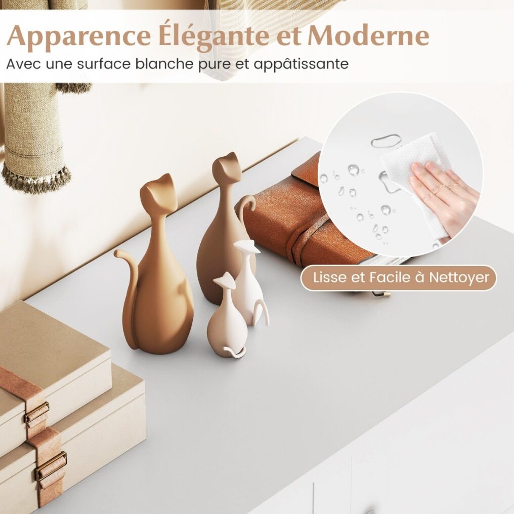 Featuring four internal shelves and a wide top, this storage cabinet is perfect for shoes and everyday essentials. The shelves are easily removable to accommodate different types of shoes. Thanks to its anti-tip design and sturdy support legs, this piece of furniture ensures enhanced stability and safety. It's perfect for the entryway, living room, dressing room, or hallway. Easily improve the organization and aesthetics of your home with this practical and stylish organizer that adapts to your lifestyle.