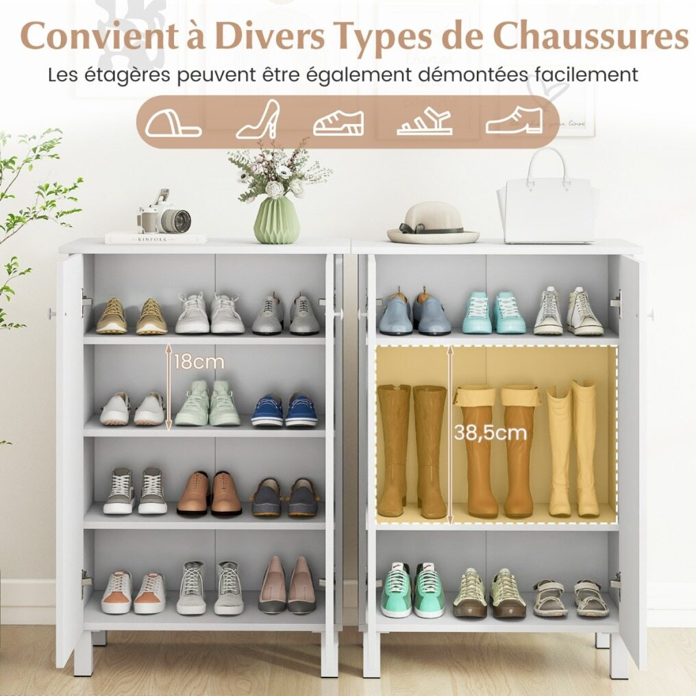 【Customizable Storage】3 of the shelves inside the cabinet are removable, allowing you to easily adjust the space to fit various types of shoes, from boots to ballet flats, meeting all your needs.