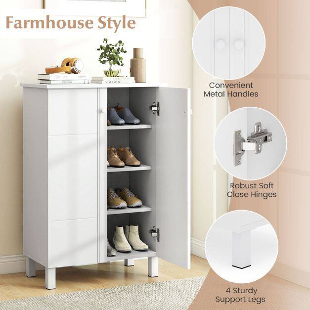 【Spacious Organization】Featuring 4 interior shelves, this shoe organizer keeps your shoes neatly arranged. Additionally, the wide top provides convenient space for everyday items such as keys, bags, or decorations.