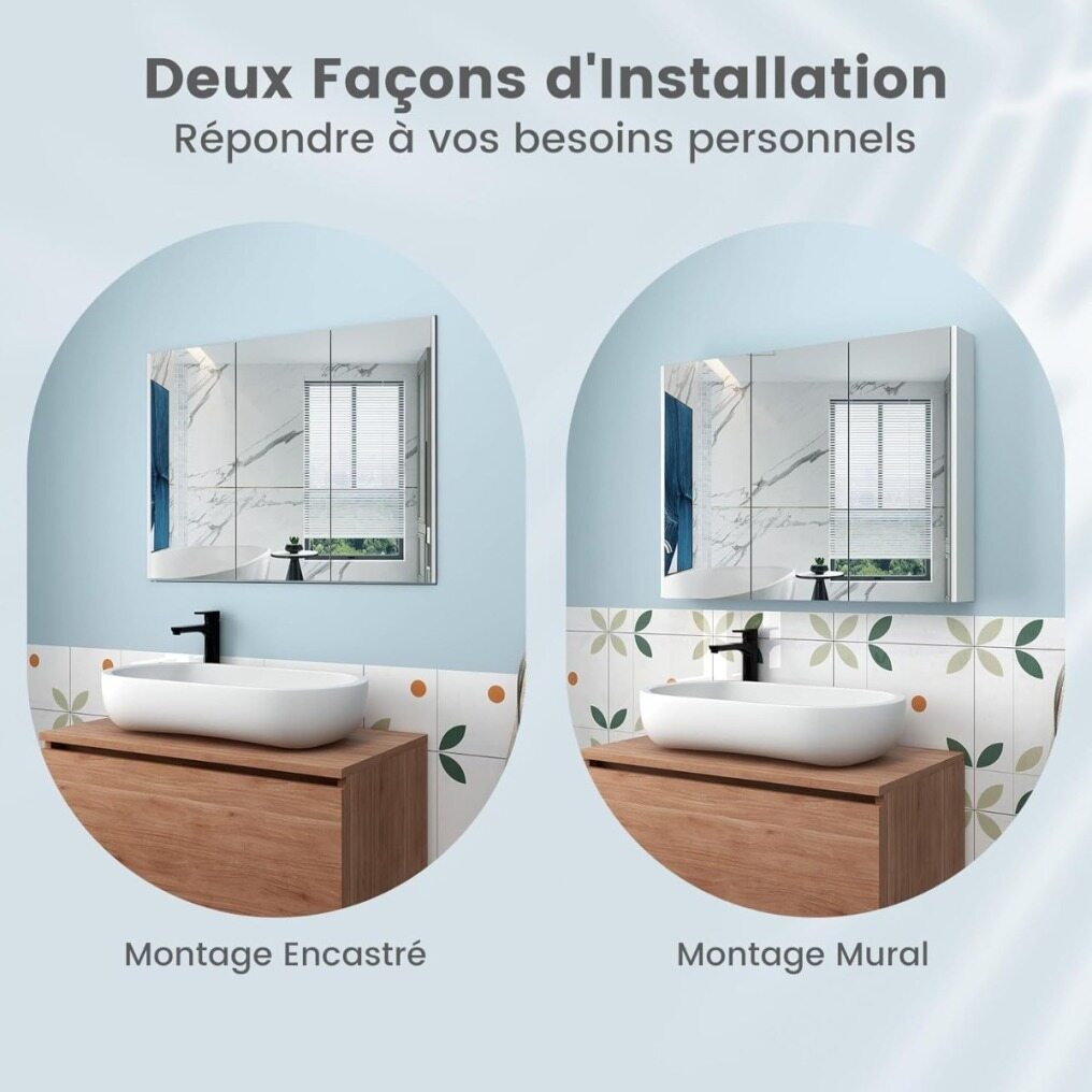 【2 Installation Options】This bathroom mirror cabinet is available with either a recessed or wall-mounted bracket to suit your personal needs. The included wall screws help to securely attach the cabinet to the wall. Product dimensions: 90 x 11 x 65 cm (L x W x H).
