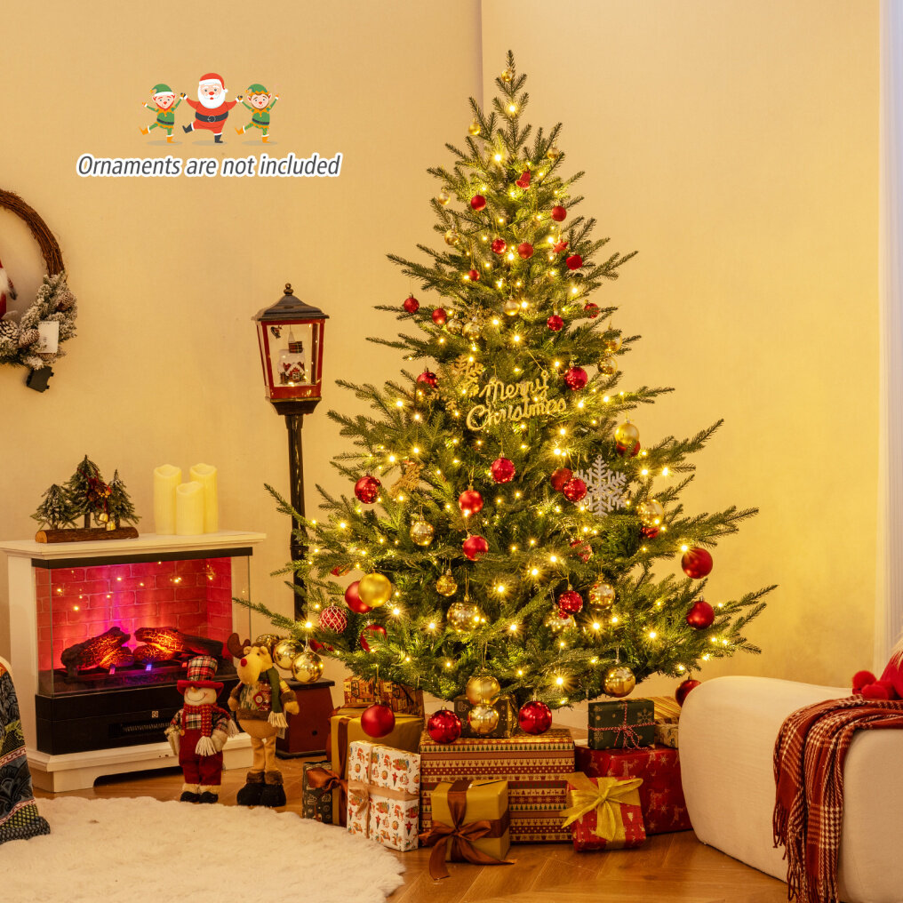 ● Lush Branches and Premium Materials: Enjoy a truly stunning Christmas as this 6/7 ft holiday tree boasts 830/1102 lush branch tips crafted from 100% new PE and PVC materials. These leaves are fireproof, anti-fading, anti-deformation, non-allergic, and smell-free.