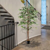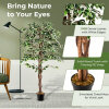 ● Truly Lifelike Appearance: The faux ficus tree features 1008 verdant leaves that boast white edges, creating a remarkably realistic look. To further enhance the natural appeal, a real wood trunk with twisted vines and dried imitation moss will add a touch of vitality to the overall presentation.