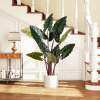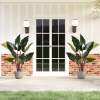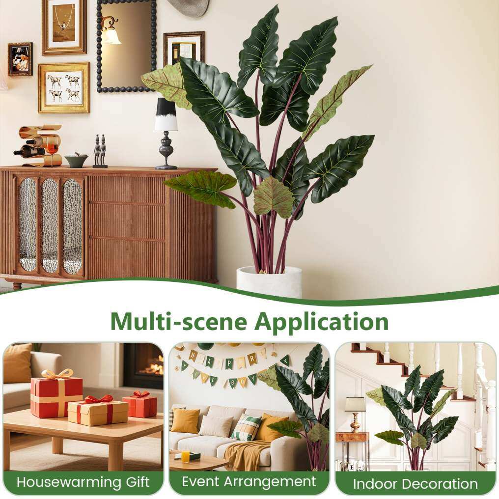 With 11 large leaves showcasing intricate ruffled edges and veins, the fake potted plant exudes realism. The weighted cement-filled planter is adorned with lifelike grass, showcasing vividness and offering reliable stability. The robust bendable rainbow taro stems and leaves are bendable, allowing you to easily reshape the artificial tree to a natural and fuller appearance. Crafted from polyester fabric, the leaves remain non-deformable and evergreen with minimal effort to maintain. Therefore, the tall faux tree is perfect for event arrangement, indoor decoration or housewarming gift.