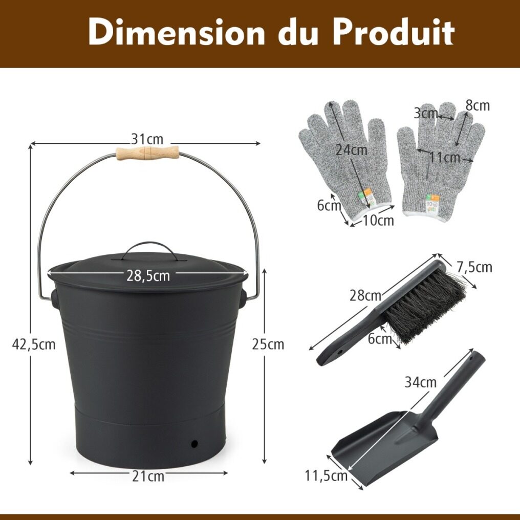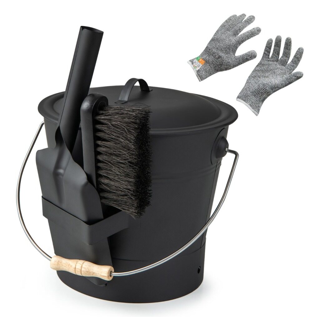 Are you tired of messy fireplace clean-ups? Look no further than our 2 Gallon Ash Bucket with Lid! Its generous capacity stores and transports ash, pellets, logs, and more. The tightly fitting lid prevents debris from escaping during storage. Keep your living space clean and undamaged with hassle-free pouring. Besides, this durable, rust-proof bucket features a comfortable wooden handle, which can protect your hands from injury or burns. It's lightweight and easy to carry, versatile for bonfires, fire pits, barbecues, and wood burners. Additionally, the set includes a brush, ash shovel, and cut-resistant gloves for added convenience. Upgrade your fireplace cleaning routine today with our high-quality accessories.