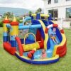 Endless Bouncy Castle Fun : The inflatable bouncy castle features an adorable ship-like design that captures kids' attention at first sight. It combines a curved water slide, a paddling pool, a bouncy house, a climbing wall, and a target game, greatly enriching their playtime and allowing them to share it with friends.