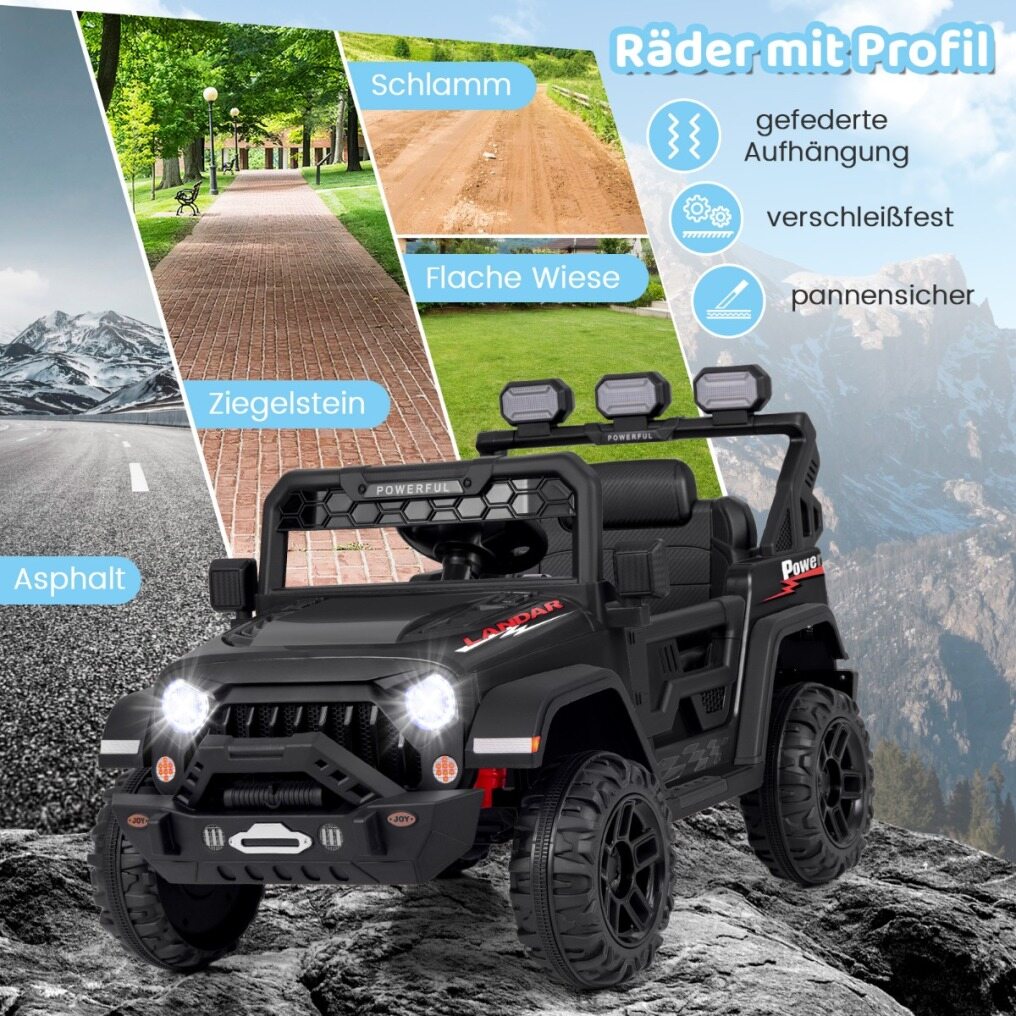 Ideal suspension: Ready for any terrain such as brick, asphalt and grass, the 12V children's toy car comes with heavily profiled wheels for reliable traction. In addition, the springy suspension system ensures a bump-free ride.