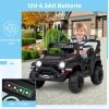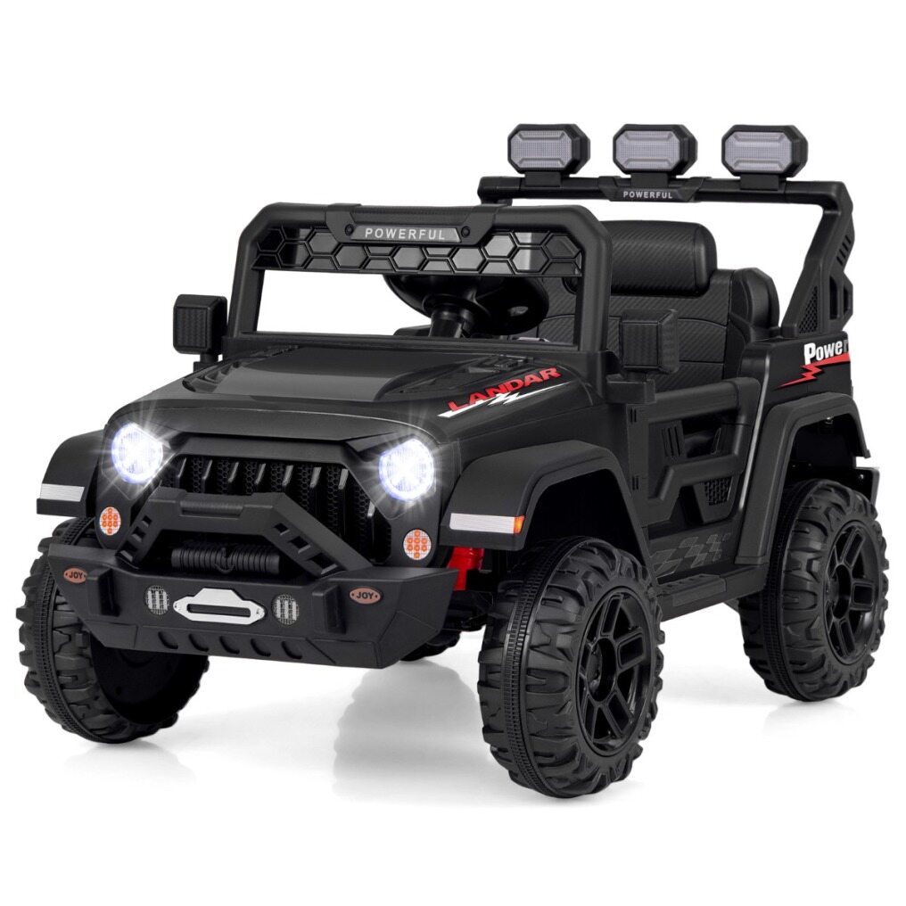 The 12V kids' vehicle ensures a fun and safe driving experience with its two 12V motors, one-button ignition, soft start and slow stop. This electric car offers entertainment features such as voice prompts, wireless connectivity, volume control, a USB port, microphone input, music and light control. The kids' vehicle allows two control methods. Equipped with robust suspension and all-terrain tires, it can effortlessly traverse any surface. It is decorated with realistic details such as LED lights, functional mirrors, lockable doors and a power indicator.
