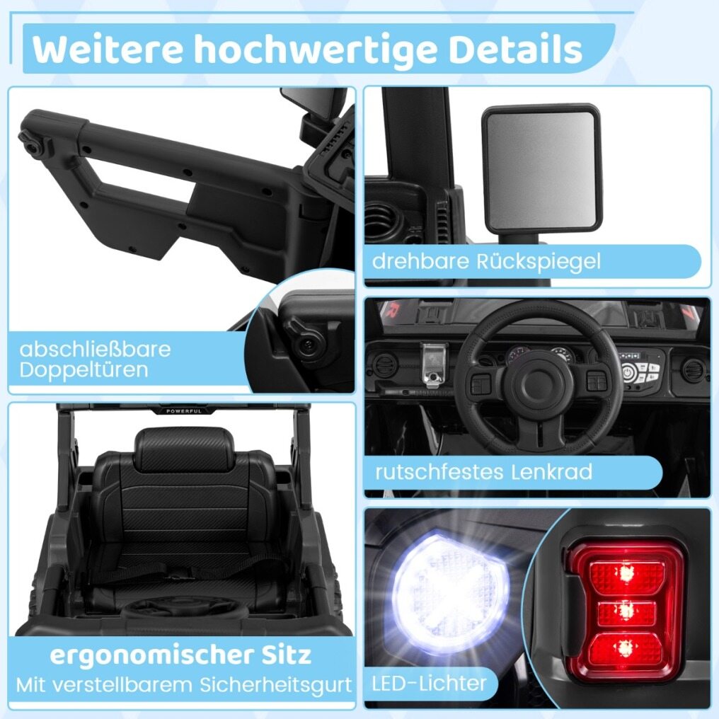 For realistic adventures: The children's vehicle offers additional high-quality details such as LED lights, rotating rear-view mirrors and lockable double doors. It also includes a battery indicator to monitor the play time.
