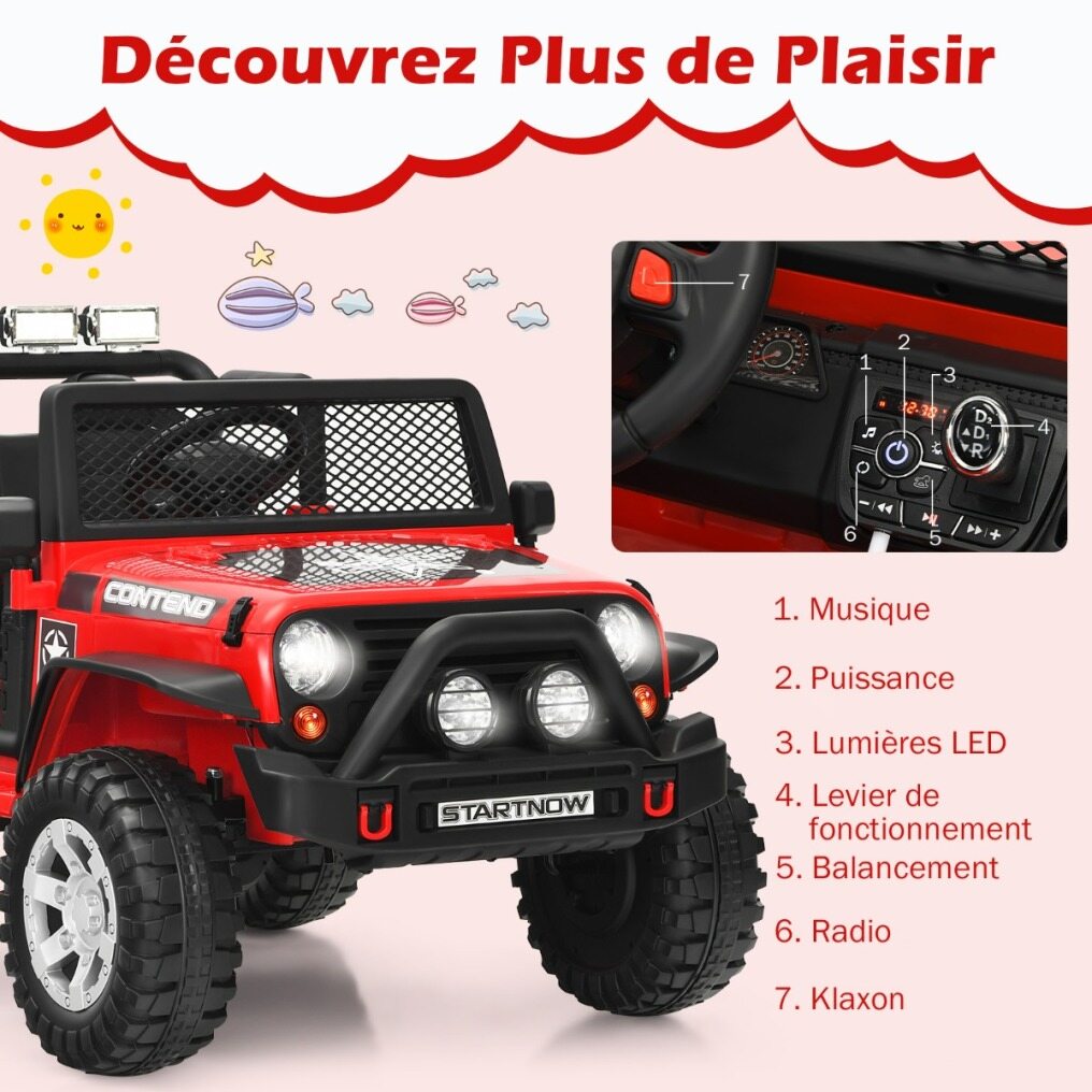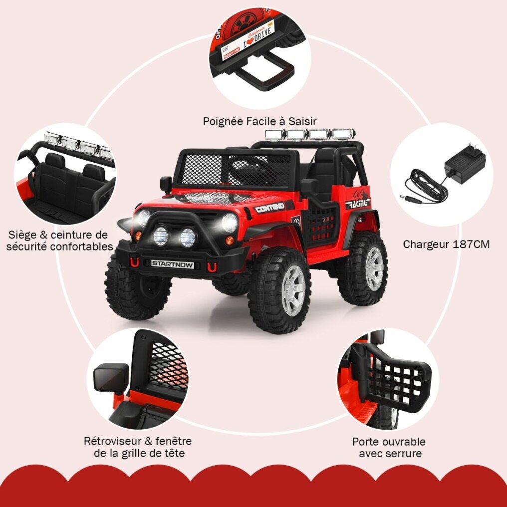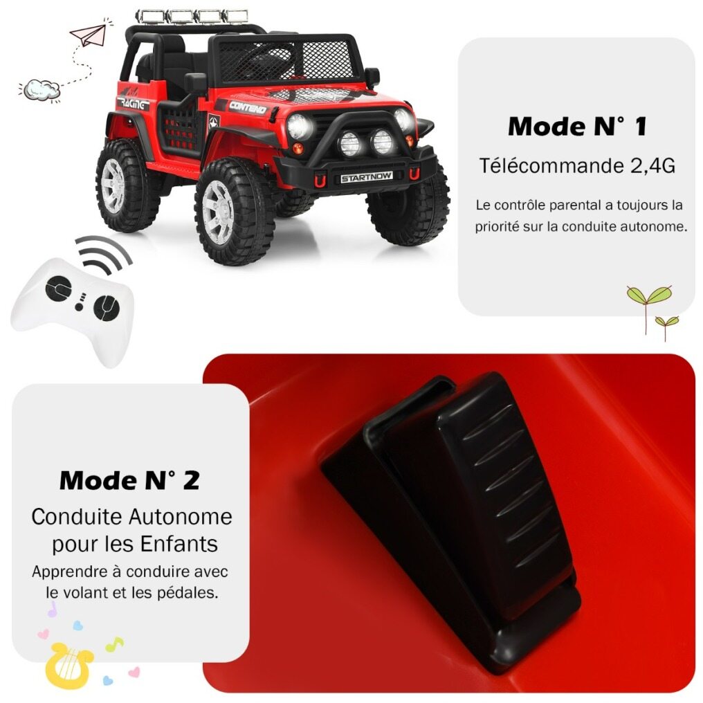 【Safe and Smooth Riding】This 12V vehicle features front and rear spring suspension and a soft-start function to ensure a safe ride on almost any terrain. Always fasten your children's seatbelts when they ride in the car, and the spacious seat ensures a comfortable and enjoyable ride.