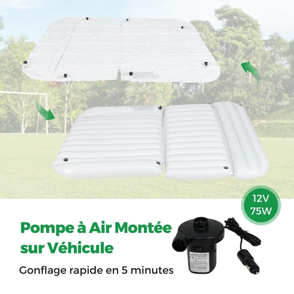 Enjoy a restful sleep with this spacious and comfortable air mattress. Its 7 independent air chambers, including support wings, allow for flexible inflation depending on the available space in your car. The double-sided design features a smooth PVC surface for easy cleaning and a soft flocked surface for added warmth and comfort. Quick and easy to inflate with the included vehicle-mounted air pump, this air bed is perfect for camping, road trips, picnics, or as a spare bed at home.