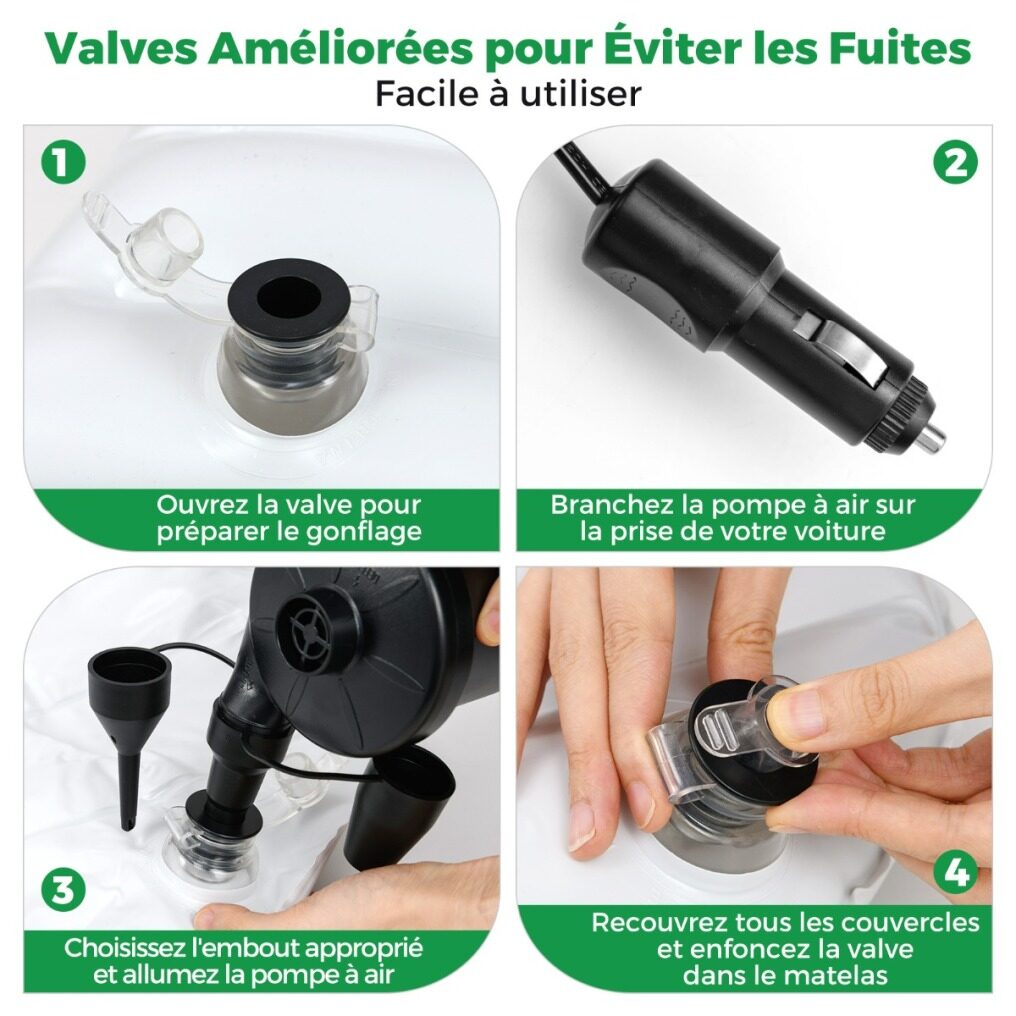 【High-Quality Construction】Designed to withstand a wide range of temperatures, from -25℃ to 60℃, this inflatable mattress for car camping is ideal for various weather conditions. Improved valves prevent leaks, providing a firm and stable sleeping environment all night long.