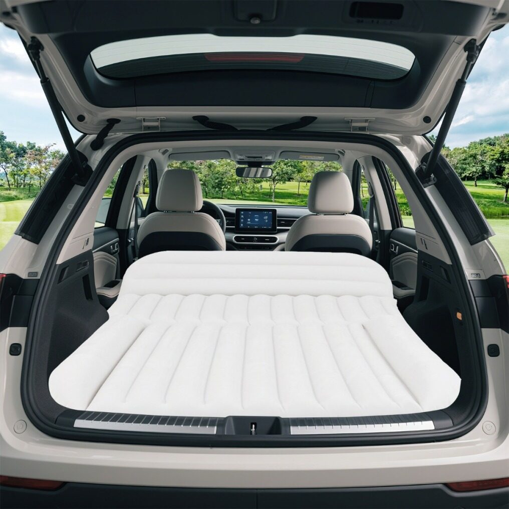 【Double-Sided Design】One side of this inflatable car bed has a smooth PVC surface that is easy to clean, while the other side offers a soft flocking surface for added warmth and comfort. You can tailor your sleeping experience to your preferences.