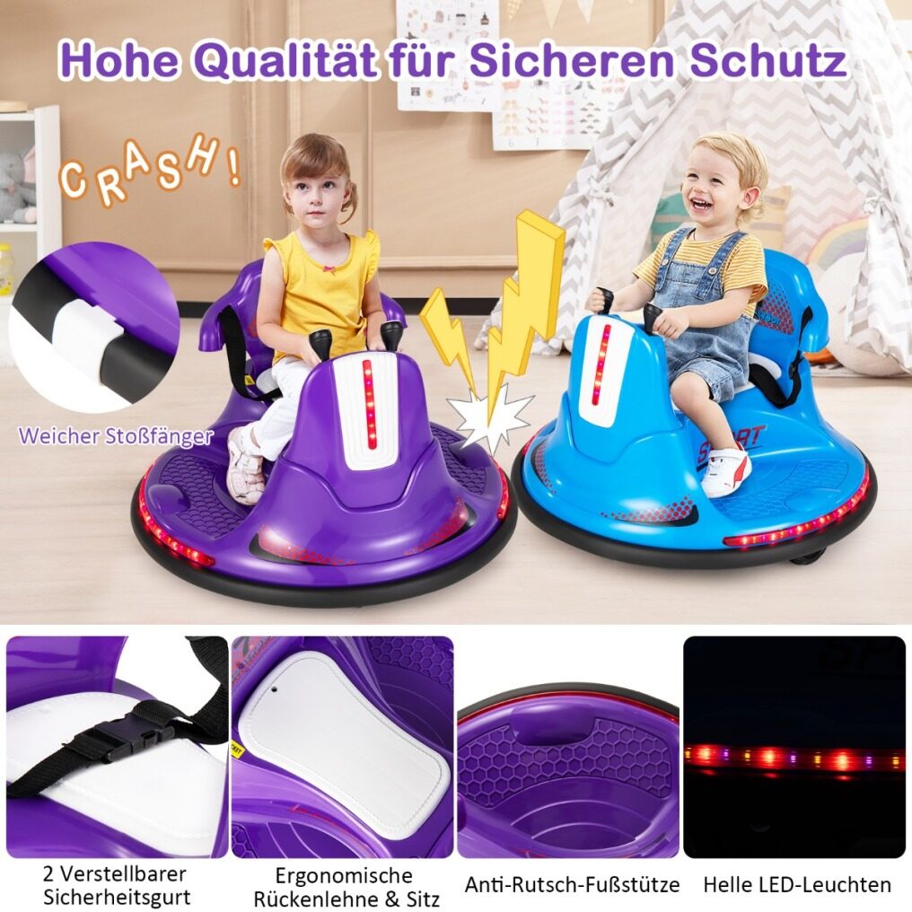 360 Degree Rotation Function: Our bumper car is equipped with 2 directional wheels and 2 swivel wheels for smooth movement and flexible steering. Our ride-on car has a speed of 3-6 km/h and can rotate in all directions. Thanks to the durable wheels, you can ride this bumper car on any flat indoor floor, including wooden floor and ceramic floor.