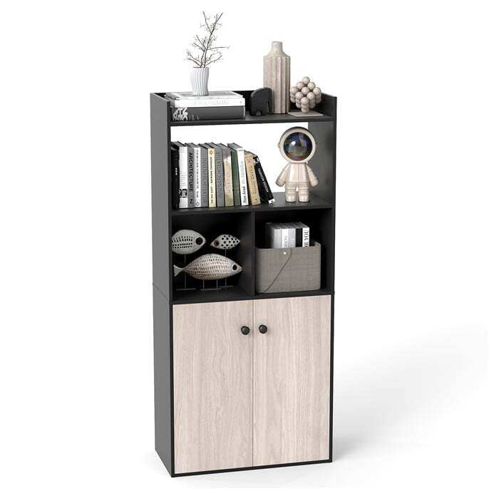 Organized storage and display space: This freestanding bookcase features a three-tiered open shelf, providing ample space for displaying book collections or decorative items. The lower double-door cabinet offers additional concealed storage for less attractive or personal belongings.
