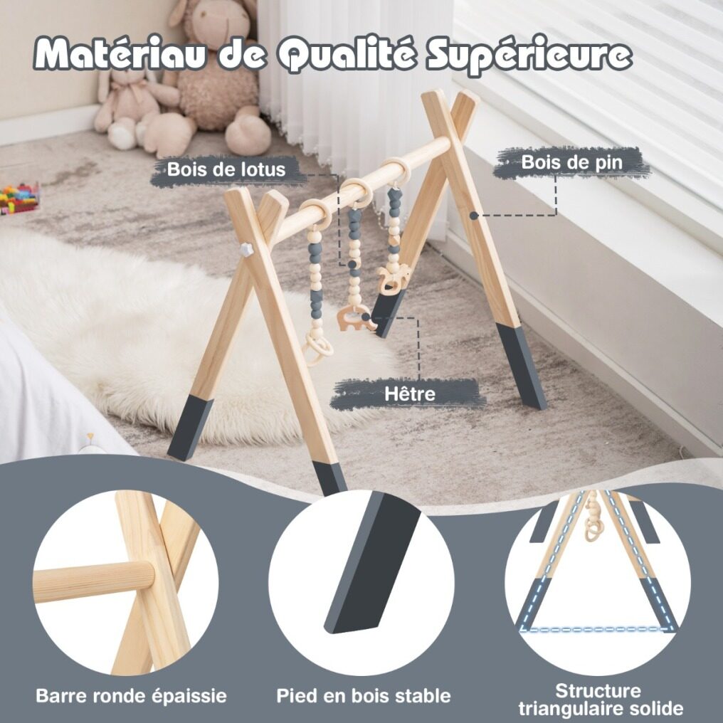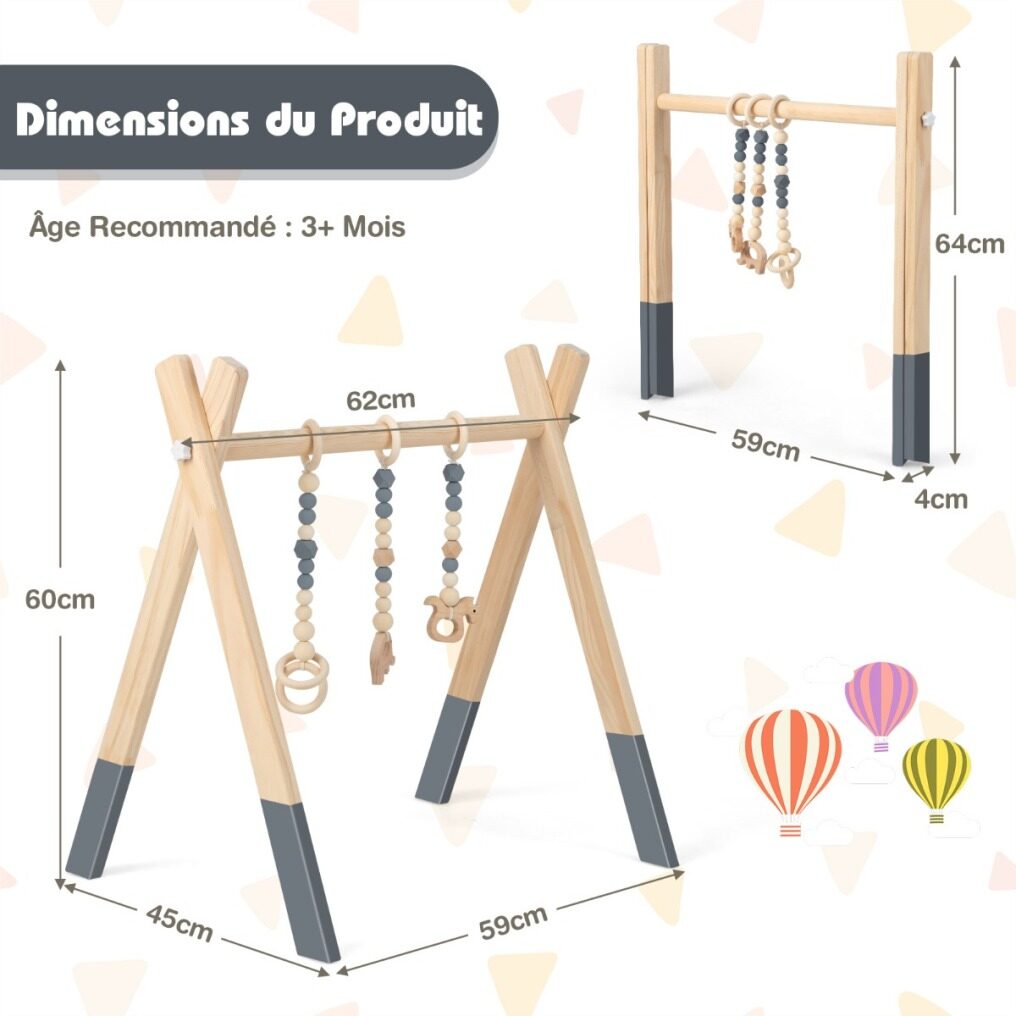 Wooden Activity Gym for Babies Over 3 Months Triangular Shape 60x44x60CM Grey