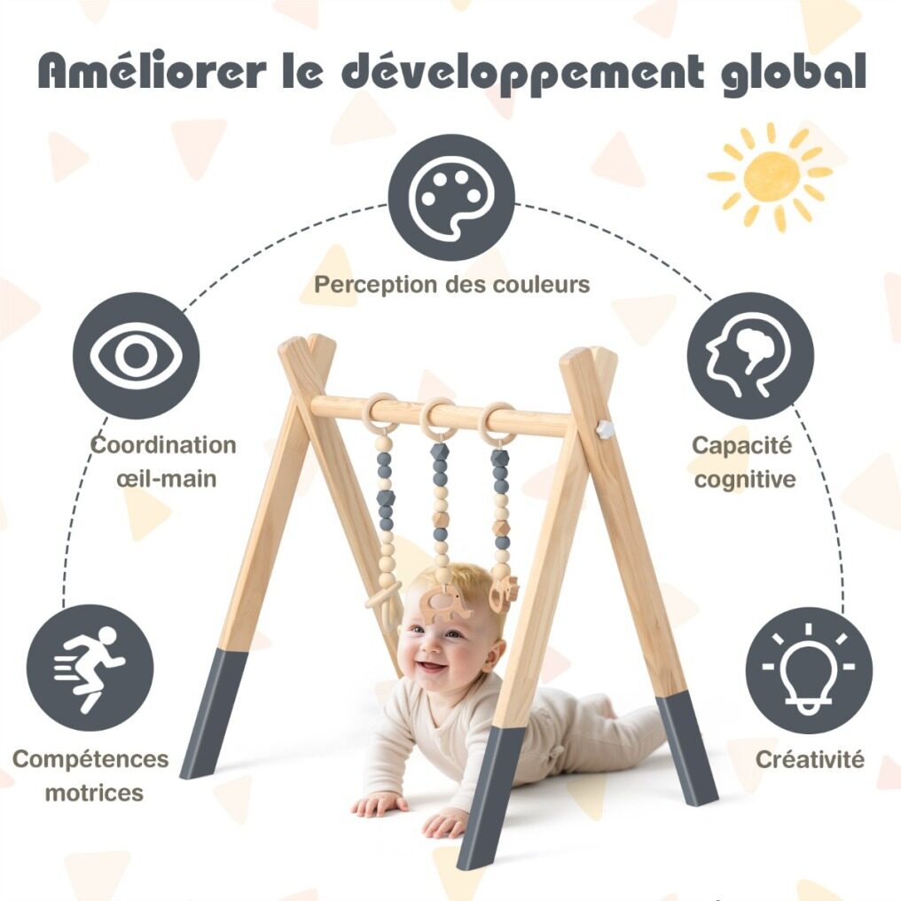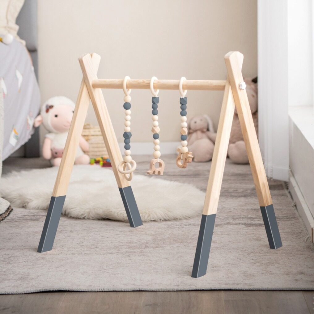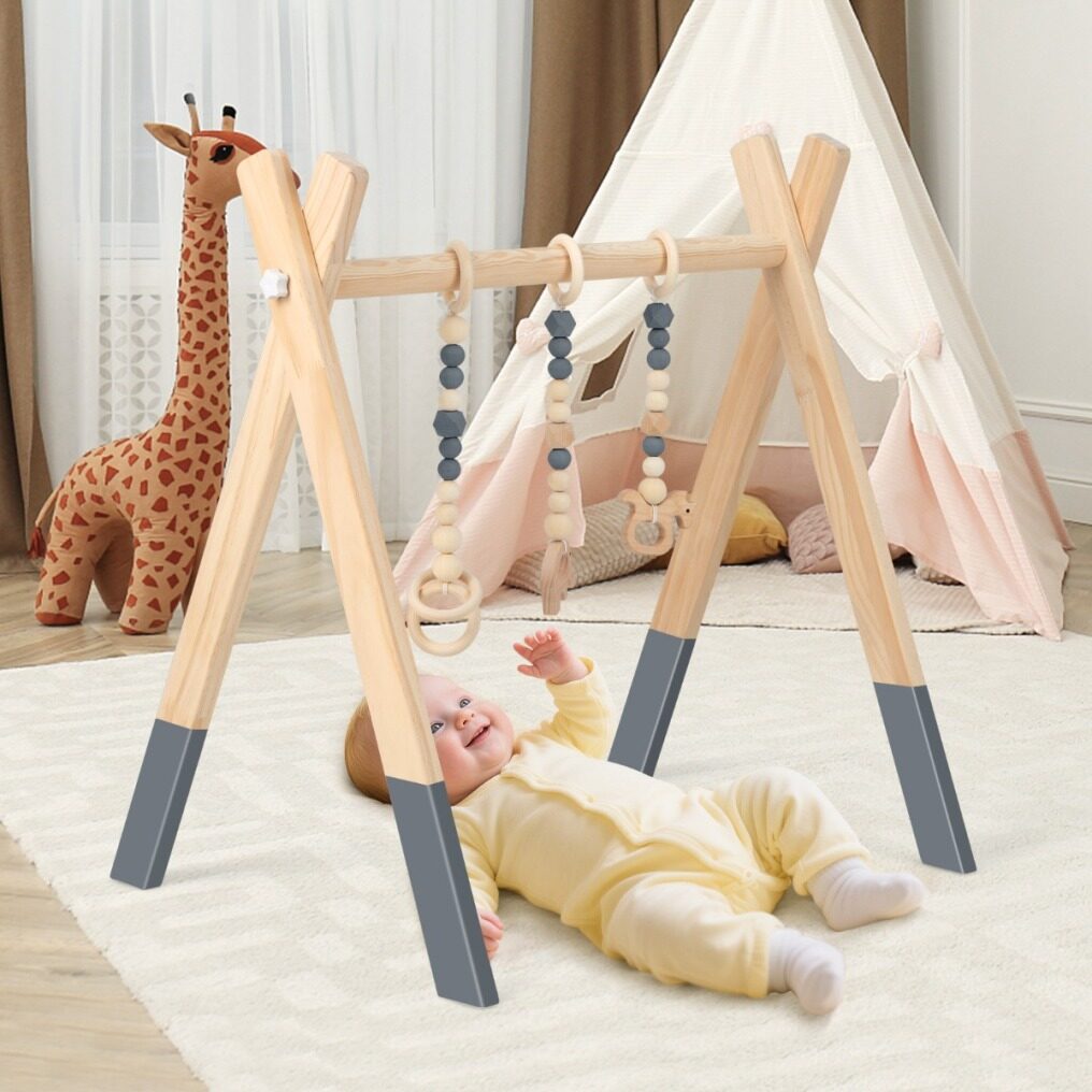 Baby Activity Gym for 3 Months and Older with Toys Foldable Activity Center Triangular Wooden Shape 60x44x60cm Grey Sourcing Wholesale Supplier/Distributor | B2B Marketplace
