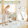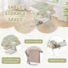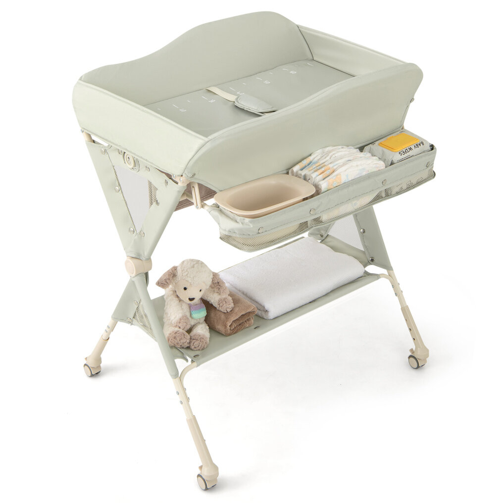 This baby changing table is designed with 3-level height adjustment, which will fit most parents and accompany the baby to grow up. With the changing table, there is no need to bend over or kneel on the floor to change diapers or clothes for your baby. The side storage basket and bag and bottom shelf offer ample storage space for placing diapers, feeding bottles, tissues, baby’s shoes, clothes, small toys, bags and more. Equipped with a removable water basin, you can wash the baby's buttocks easily. Moreover, you can also change diapers or clothes for your baby, do massages, bath your baby, hang clothes, etc. As for safety, this changing table features 4-sided fences and a safety belt. The waterproof changing table pad surface is easy to clean with a damp cloth. The enduring material allows for a long-lasting lifespan. 4 lockable and smooth rolling wheels make it easy to move round and keep it still if needed. In addition, our changing table can be folded up easily and stored against the wall or behind the door when not in use.