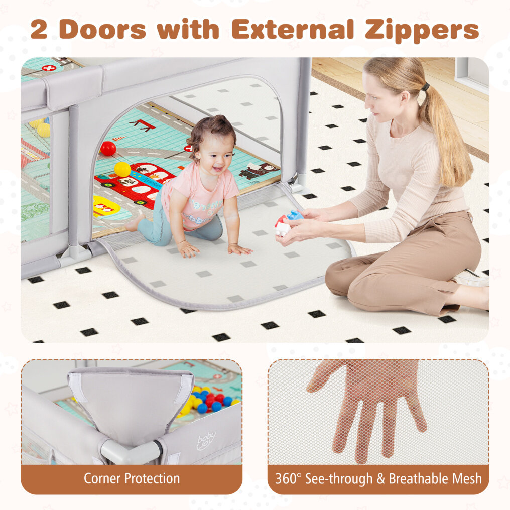 ● Visible Mesh and Zipper Doors: 360° see-through and breathable mesh enables you to see your little ones from all directions, ensuring better interaction. 2 doors with external zippers prevent babies accidentally climbing out. Besides, the fence is equipped with corner protection to avoid scratches or bumps.
