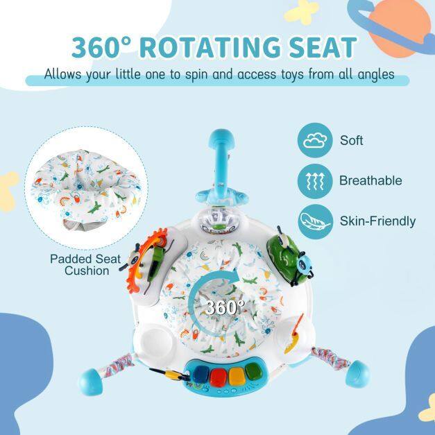 【360° Rotating Seat】The swivel seat allows your child to turn around to reach all the toys, stimulating physical coordination and motor development. The soft, breathable, and hypoallergenic padded seat ensures optimal comfort during every playtime.