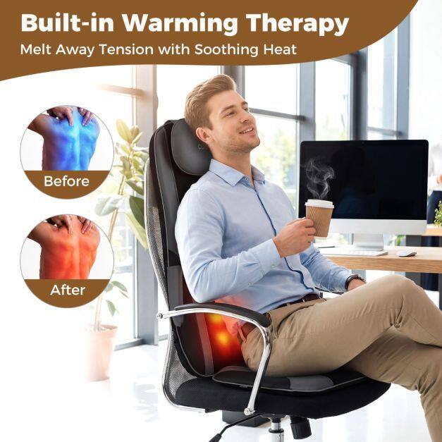 Soothing Heat Therapy: Experience all-day comfort as the back massager for pain relief wraps your neck and back in calming warmth up to 55°C. With customizable auto-off timers and built-in overheat protection, you can relax worry-free. Your safety is always a priority.