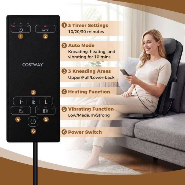 Deep 3D Shiatsu Relief: Melt away tension with the powerful back massager with heat, thanks to 4 kneading nodes that roll and glide up and down your neck and back, leaving no knot behind. Select upper back, full back or lower back massages for total pain relief exactly where you need it most.