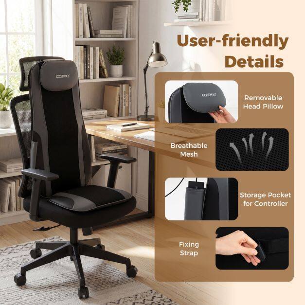 User-friendly Details: This back massager for chair is crafted from breathable mesh and high-density sponge for optimal comfort. Adjust the removable head pillow for perfect support, and keep your controller handy in the side pocket for effortless control.