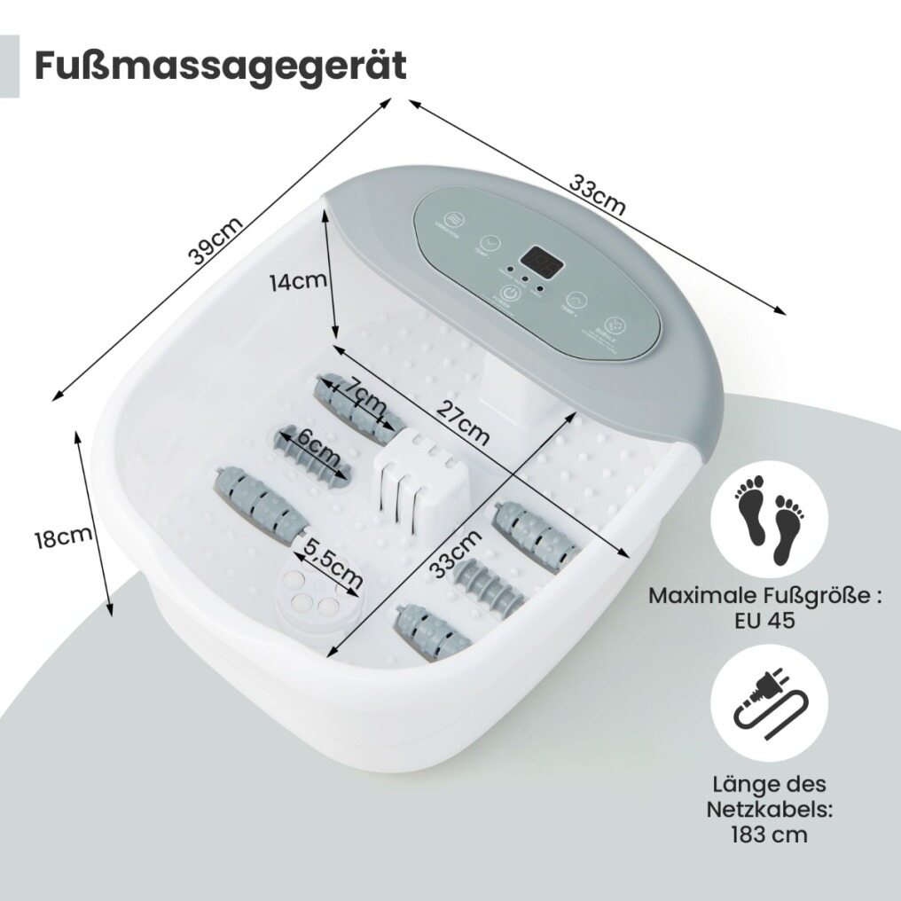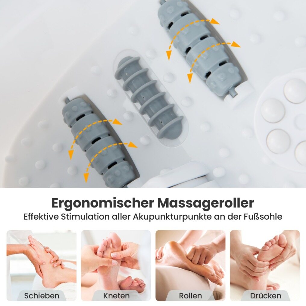 Massage Rollers Relieve Pain: Dedicated to full massage, the foot massager includes 2 types of rollers (6cm or 7cm long) and detachable massage beads. By the way, the foot bath offers plenty of space inside for massaging, suitable for feet under size 45.