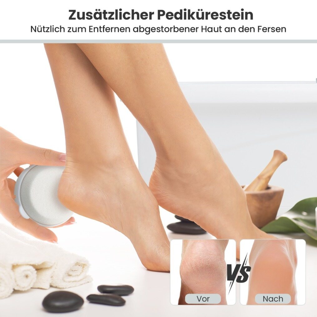 An additional pedicure stone is helpful to remove dead skin on the heels