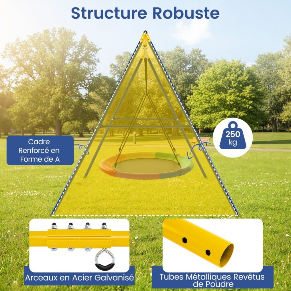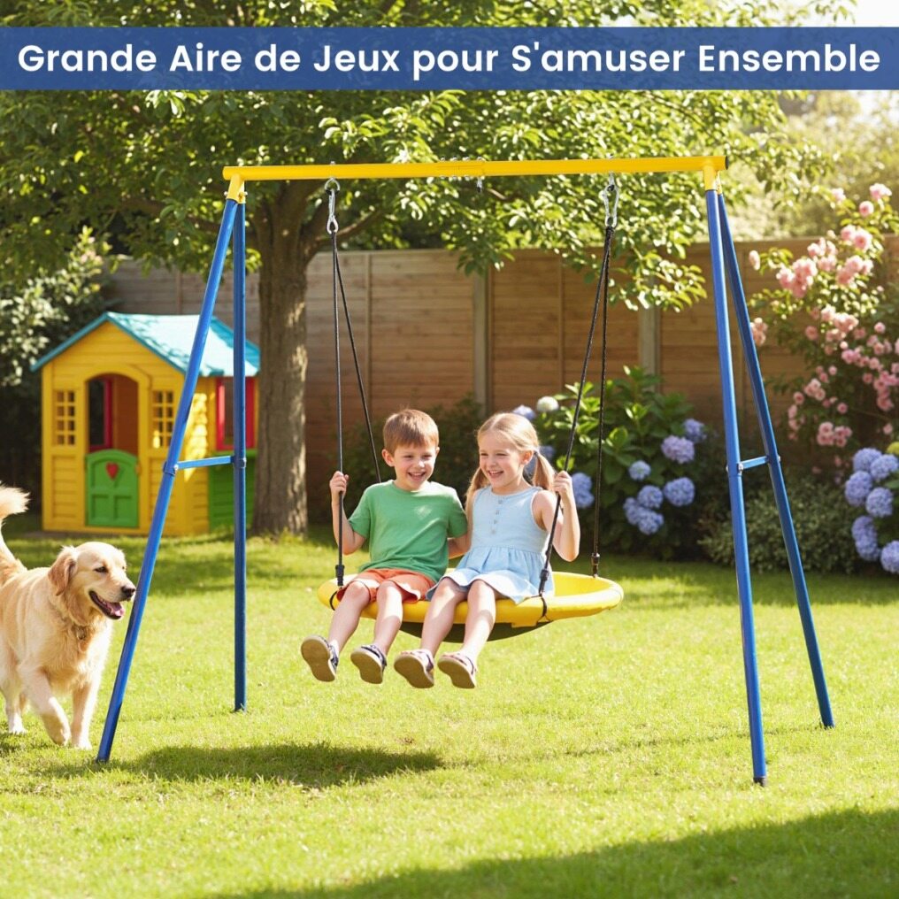 【Sturdy and Stable Metal Structure】This swing is constructed of solid metal with thick tubing to provide a reliable base for everyday use. The A-frame shape and reinforced crossbar reduce wobbling and enhance the feeling of security during use. Maximum weight capacity 250 kg, suitable for both children and adults.