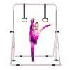 Discover the height-adjustable gymnastic bar for growing young athletes! This versatile training device for children encourages active play and skill development – whether in the living room, playroom, or training center. With a sturdy metal frame, rounded corners, non-slip rubber pads, and adjustable support legs, this gymnastic bar guarantees stability and safety on various floor surfaces. Thanks to its space-saving, foldable design, assembly and disassembly are a breeze, and the four height settings (93/105/117/132 cm) grow with children from 3 to 12 years old. Adjustable gymnastic rings also allow for a variety of exercises to strengthen strength, coordination, and flexibility – making fitness fun for every child and adapting to their developmental stage.