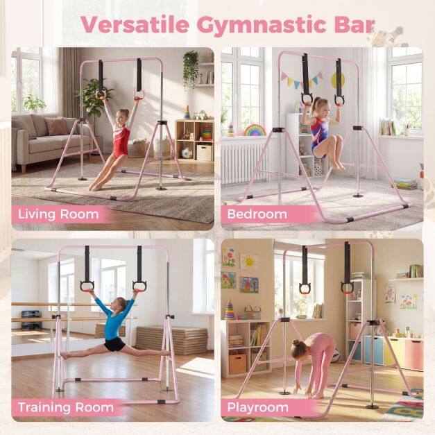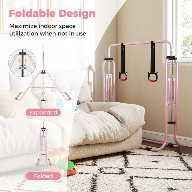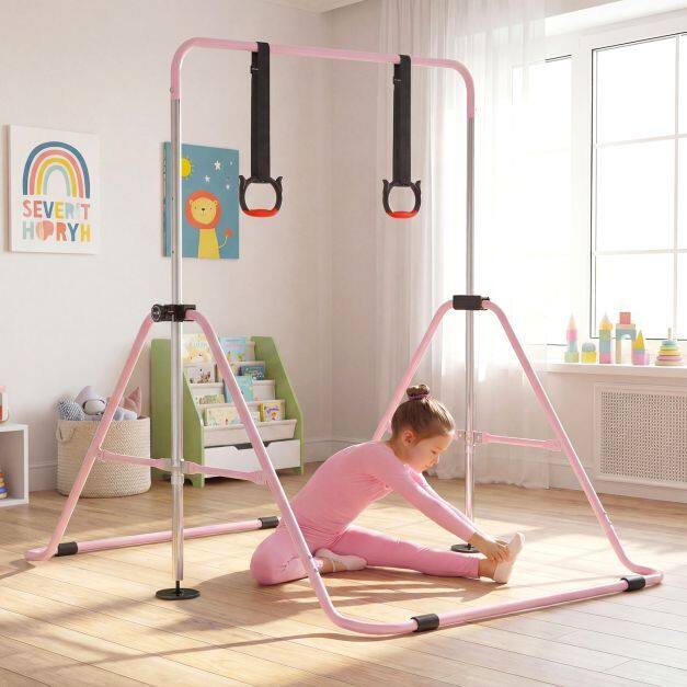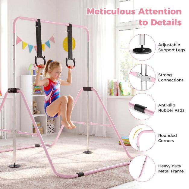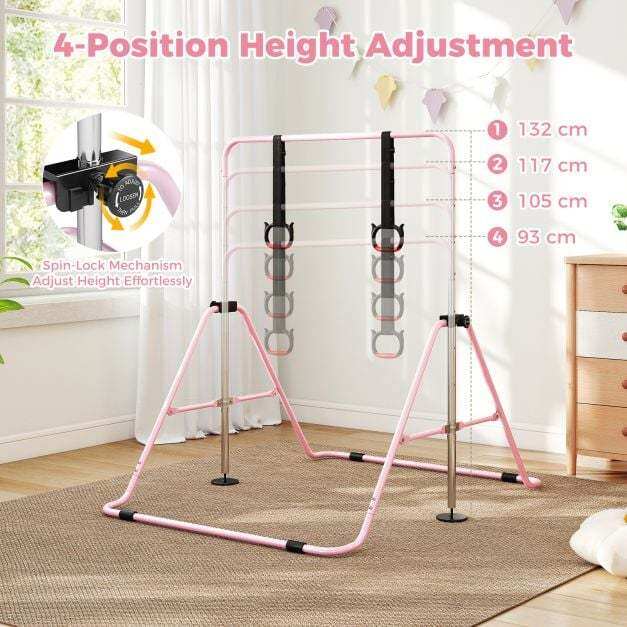 Space-saving and foldable design: By simply raising and lowering the support bars, the gymnastics bar can be easily folded and unfolded, simplifying storage and setup. The user-friendly design also minimizes the space required when the bar is not in use.