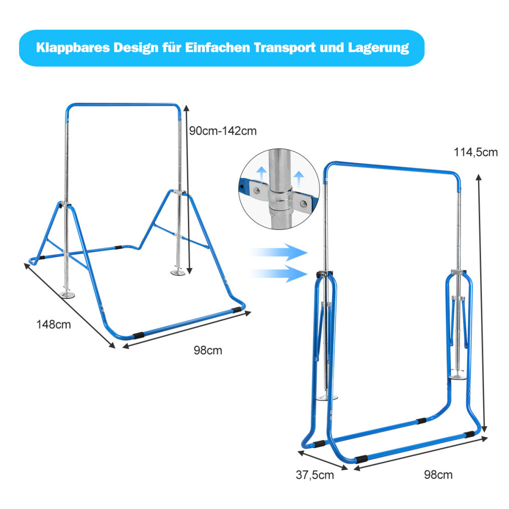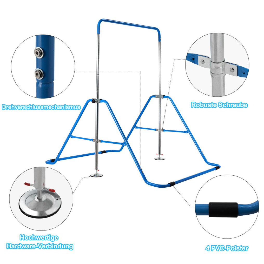 4-stage height adjustment: The height is adjustable in 4 stages: 90 cm, 105 cm, 115 cm and 130 cm. This allows children of different heights to use our adjustable monkey bars for training and easily select the appropriate height with the adjustment knob.