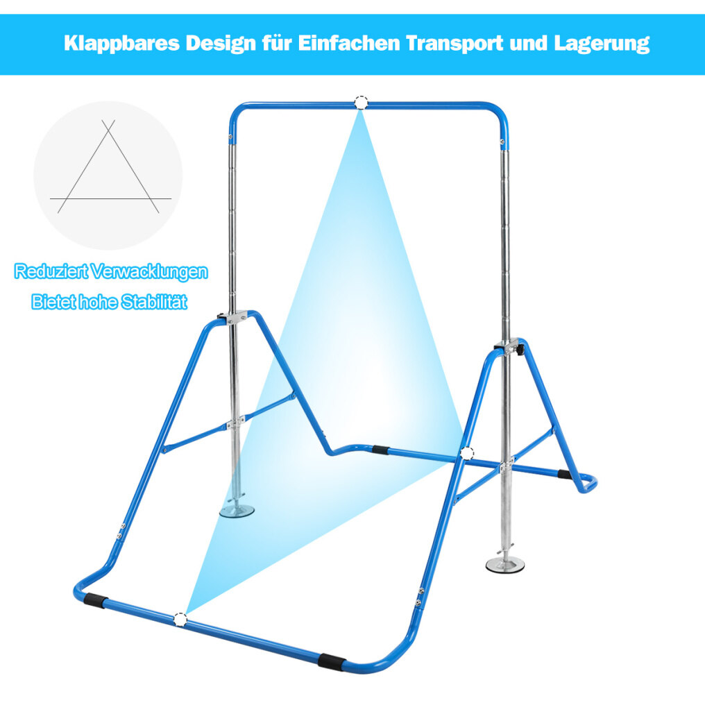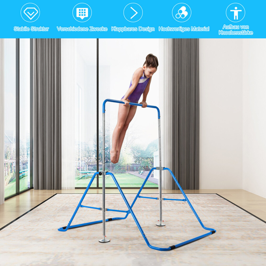 Are you worried about your children's health? Are you afraid they're spending too much time on their phones? Do you want your children to be more courageous? Our extendable gymnastics bar is the ideal choice. It stretches children's bones and promotes their development. Daily training on the bar can also correct postural problems like hunchback. The bar is safe and stable for training, thanks to its triangular design. Four non-slip mats prevent it from sliding. The bar is adjustable to four different heights and supports up to 68 kg.