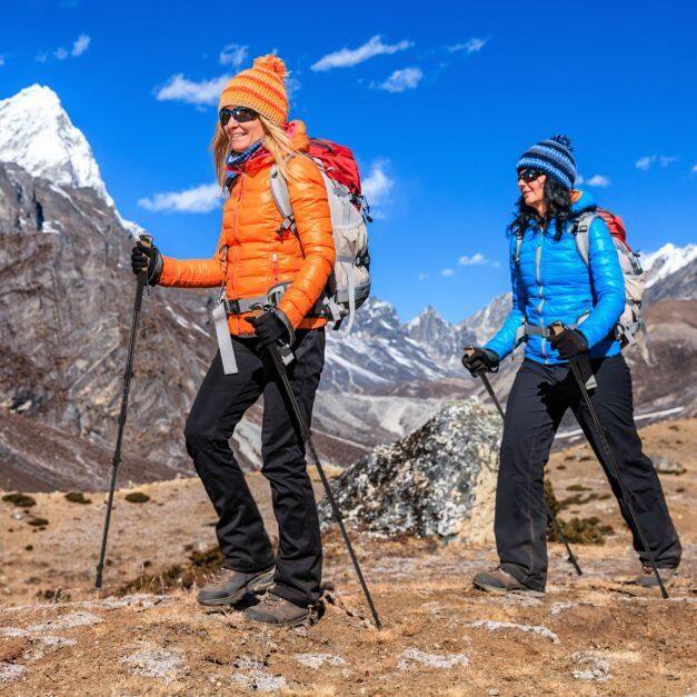 Made from durable, aerospace-grade 7075 aluminum, these poles are impact and corrosion resistant, ensuring stability on rocky slopes and challenging terrain. Adjustable from 95 cm to 135 cm with easy-to-use flip-locks, they fit almost any adventurer, adult or teen. Each pole weighs just 266 g, folds down to 61 cm for convenient transport, and comes with a storage bag so you're always ready for adventure. Enjoy a stable and comfortable grip all day long thanks to moisture-wicking cork grips, extended EVA shafts, and adjustable straps. With tungsten carbide tips and a full set of accessories (snow baskets, rubber tips, mud stops, boot tips), you're prepared for snow, mud, rocky trails, and more.