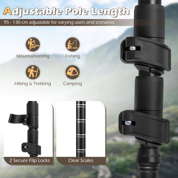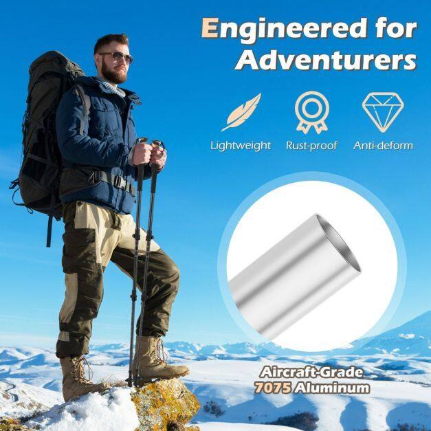 【Designed for Adventurers】Forged from aerospace-grade 7075 aluminum, these trekking poles are built to withstand pressure and impact on steep or rocky terrain. Rust- and deformation-resistant, they ensure reliable performance in harsh outdoor conditions.