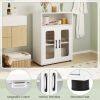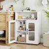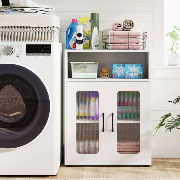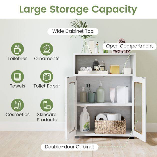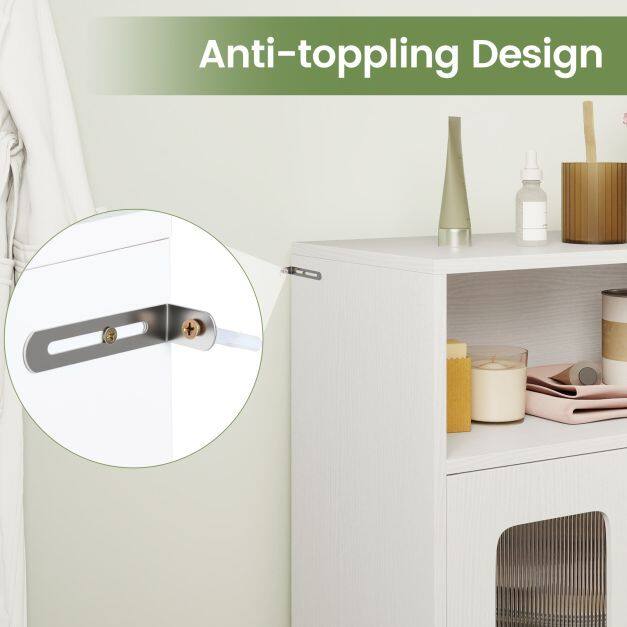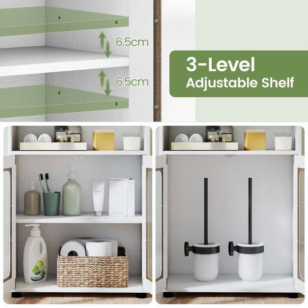With 1 cabinet, 1 countertop, and 1 compartment, the bathroom cabinet provides versatile storage options to keep your essentials neatly organized. The 3-position adjustable shelf allows you to customize the interior layout based on your storage needs to hold items of different sizes. Sturdy legs and anti-toppling system ensure excellent stability and safety. Moreover, elevated legs help protect against wet ground, making it ideal for bathroom or laundry room use. Whether placed in the bathroom, living room, or laundry area, the storage cabinet offers a practical solution to declutter your home while complementing existing decoration.