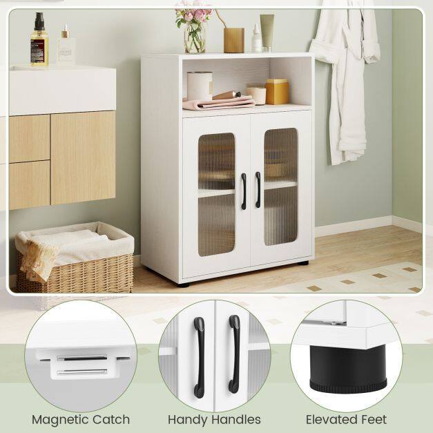 More Thoughtful Features: Elevated legs keep the cabinet away from the wet surface. Handy handles help you easily open the doors to reach for what you need. Additionally, magnetic catch keeps the door tightly closed.