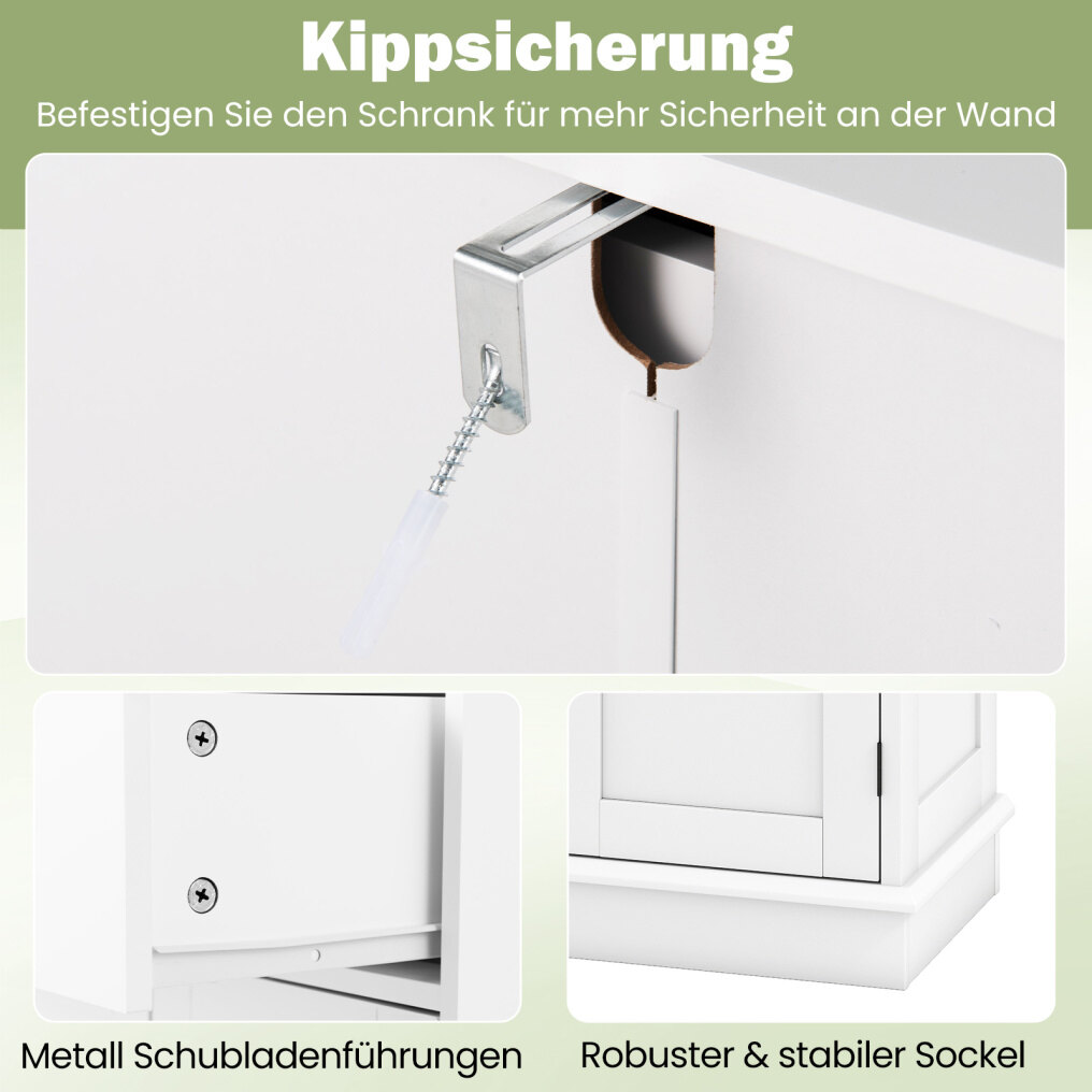 Enhanced Stability: This bathroom cabinet comes with an anti-toppling device to secure the cabinet to the wall for enhanced safety. In addition, the sturdy and stable base provides strong support and prevents wobbling.