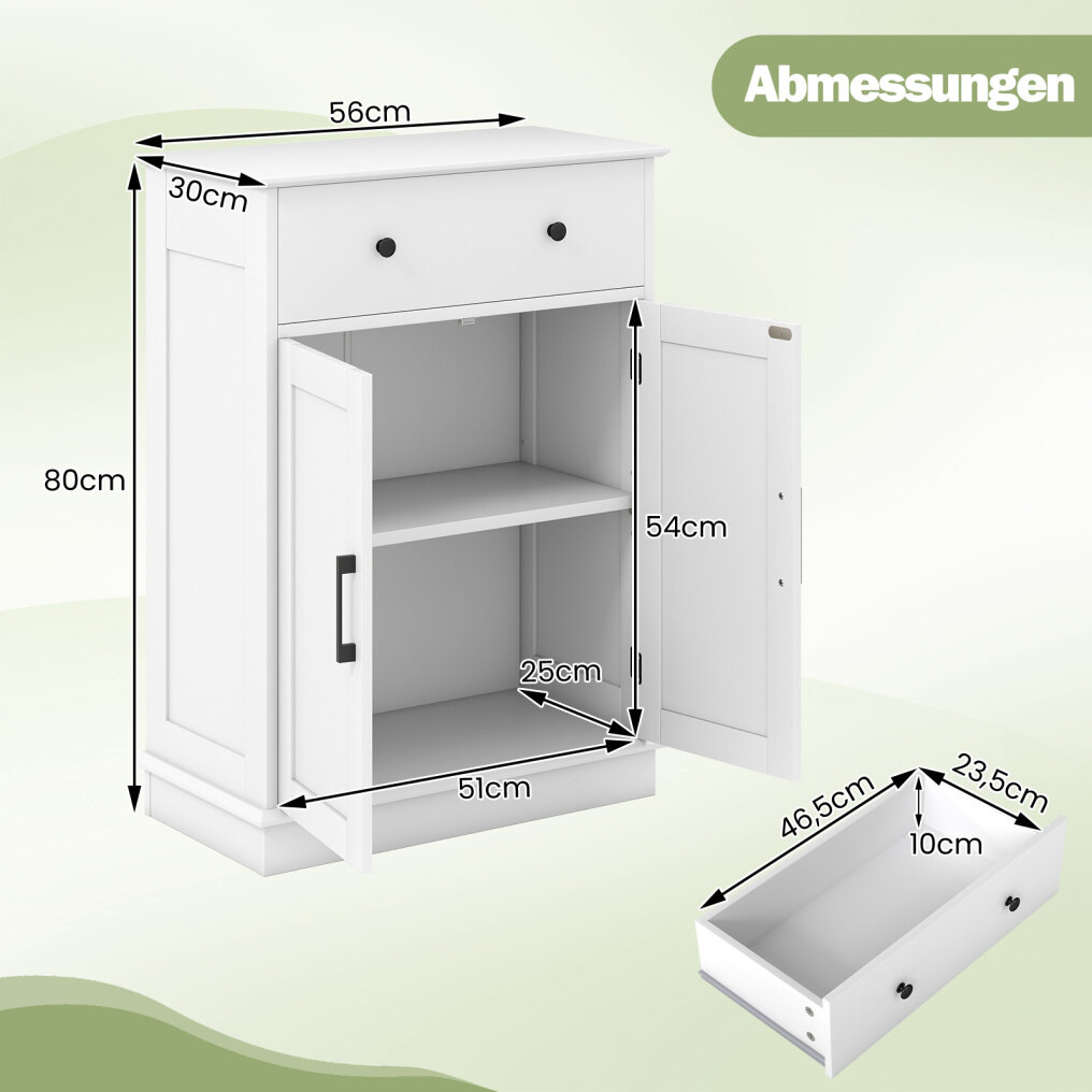 Ample Storage Space: Measuring 56 cm x 30 cm x 80 cm (L x W x H), this floor cabinet is equipped with a spacious tabletop, a large drawer and an enclosed cabinet, ensuring all your essentials are organized.