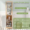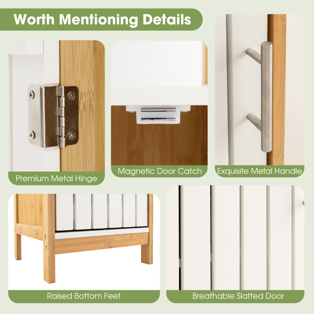 ● Simple Yet Elegant Design: The sleek appearance consists of a slatted door, which adds a rustic feel to your space. Besides, the bamboo material brings a touch of nature. This versatile storage organizer is suitable for bathroom, laundry room, living room and more.