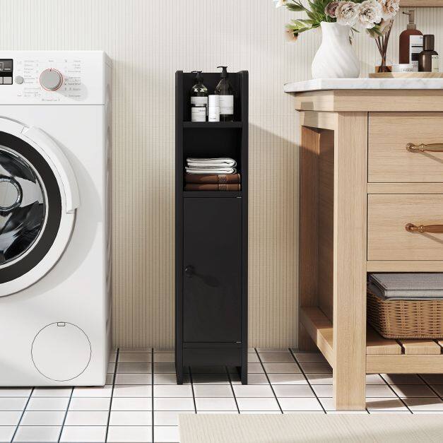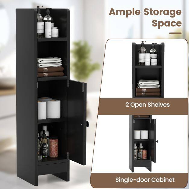 Versatile Storage Solution: Equipped with 2 open shelves and an enclosed cabinet, this bathroom organizer provides ample space for storing toiletries, toilet paper, towels, and other essentials.