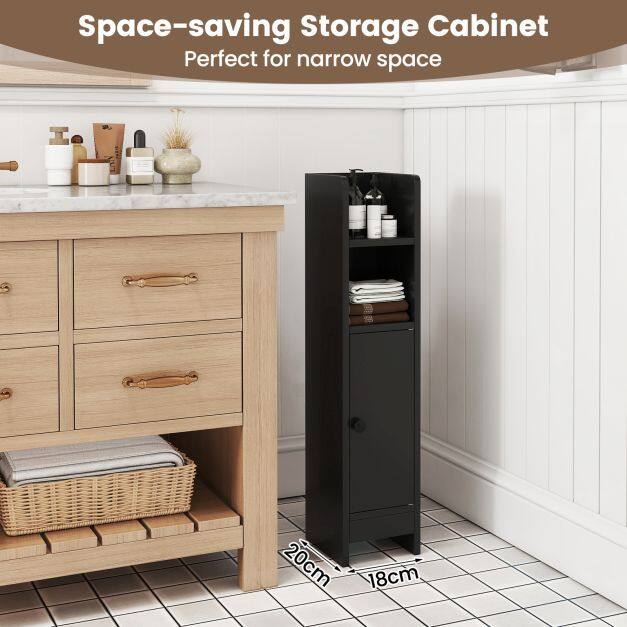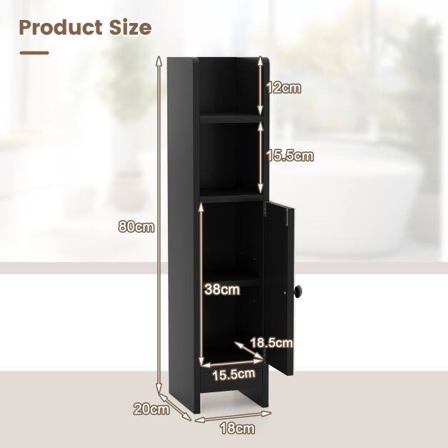 Space-Saving Design: Perfect for narrow spaces, this small bathroom floor cabinet measures only 20 cm x 18 cm x 80 cm (L x W x H). Its compact size makes it perfect for small bathrooms or any area where space is at a premium.