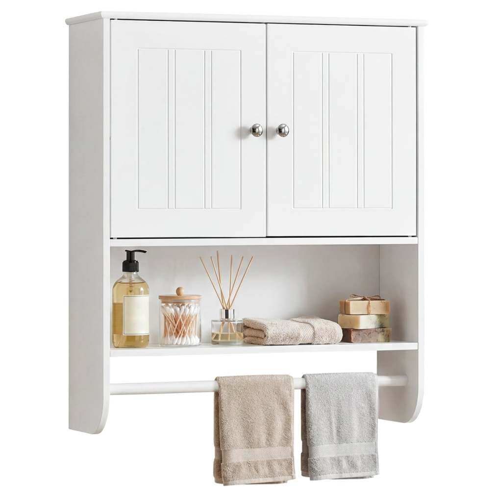 ● Sturdy & Enduring Structure: Crafted with thickened board for enhanced strength and stability, this over the toilet storage cabinet is built to last. The rubber wood hanging bar adds a natural touch while providing sturdy support for your towels.