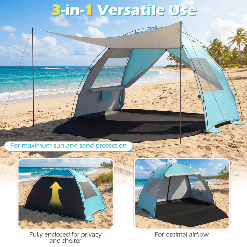 ● Ocean Breeze Views: Experience the best ventilation and ambiance with this pop up canopy - double zippered doors and 2 double-layer mesh windows ensure excellent ventilation, 360° panoramic views, and a well-lit, inviting retreat by the shore.