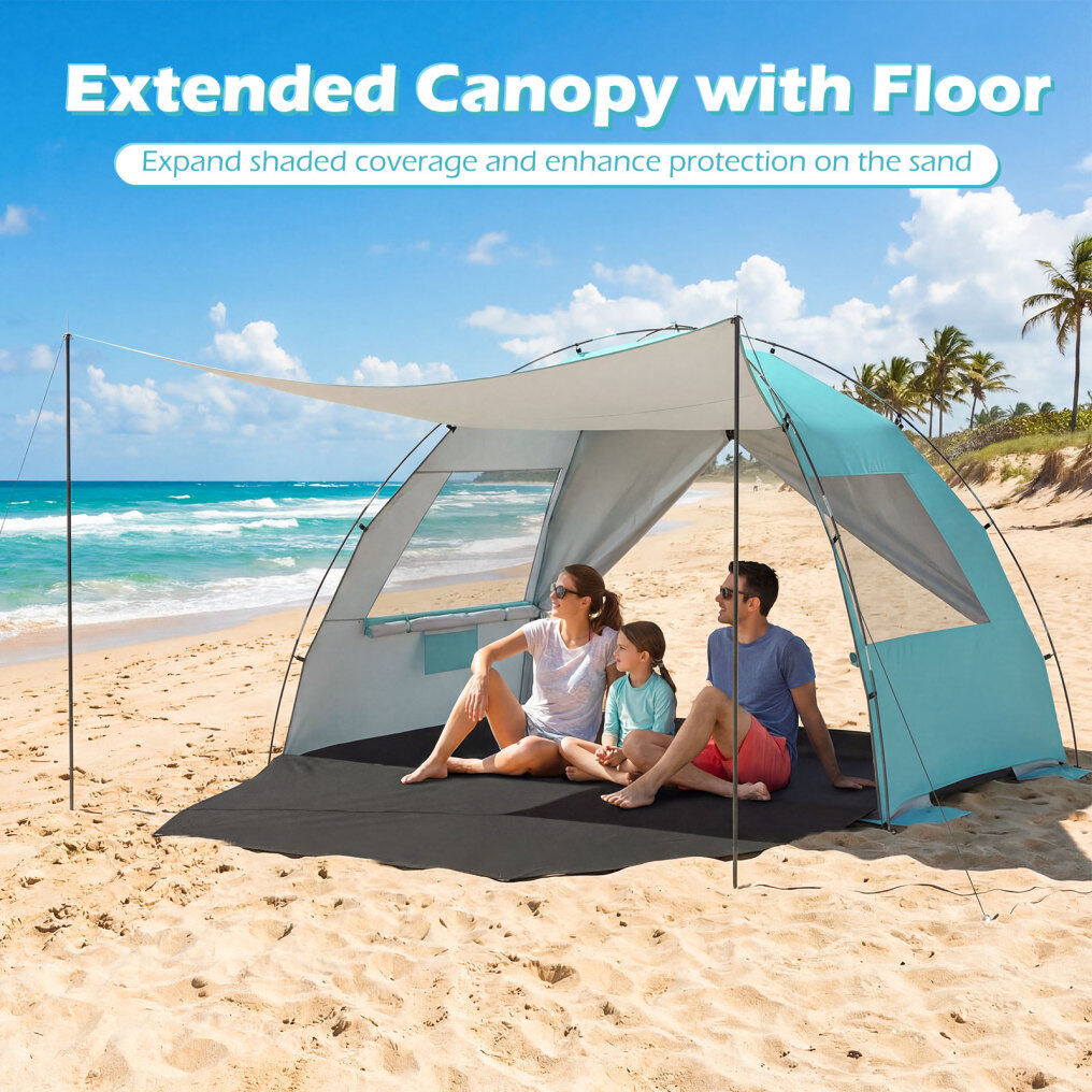 ● Group Comfort Unleashed: Indulge in a roomy 87" x 59"/220 x 150 cm interior, as this beach canopy easily accommodates 3-4 people. The extended canopy with floor expands shaded coverage and enhances protection on the sand, while creating bonus room for storage, play, or relaxation without crowding.