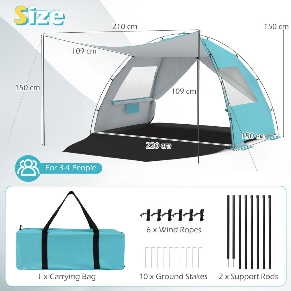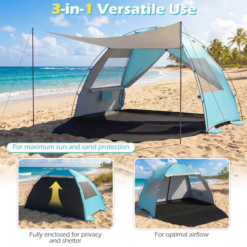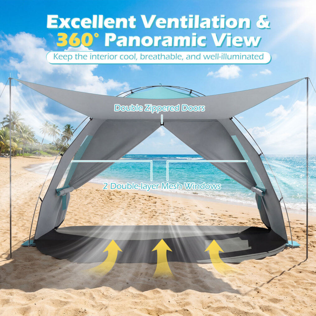 ● Ocean Breeze Views: Experience the best ventilation and ambiance with this pop up canopy - double zippered doors and 2 double-layer mesh windows ensure excellent ventilation, 360° panoramic views, and a well-lit, inviting retreat by the shore.