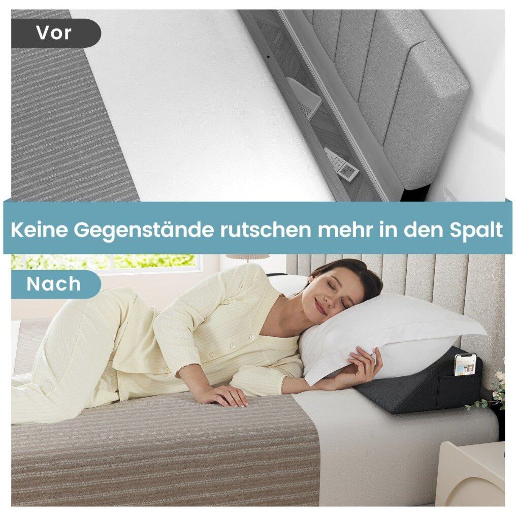 ● Reliable Gap Filler: Say goodbye to the frustrating gap between your headboard and mattress with the reliable wedge pillow. Designed to fill gaps ranging from 0 to 8 inches, this gap filler ensures your pillows, phones, and other belongings stay securely on your bed, eliminating the daily hassle of retrieving lost items.