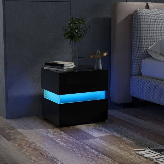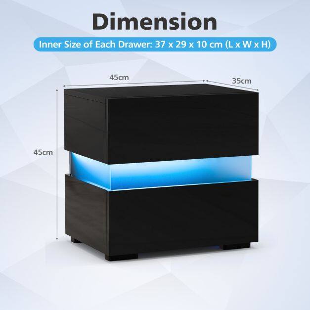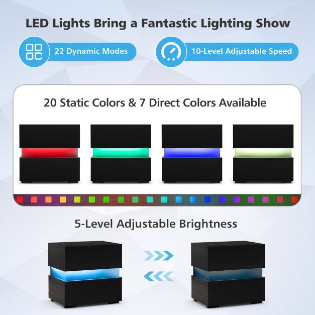 Colorful LED Lights: Since the smart nightstand boasts acrylic panels, colorful LED lights can be displayed perfectly. It comes with 22 dynamic modes, 20 static colors as well as 7 direct colors to create a charming lighting show.