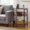 Industrial charm: This bedside table with its rustic brown wood finish adds a cool industrial touch to any room. Its versatile design fits perfectly in the living room, bedroom, or office, combining style with functionality.